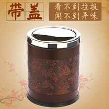 欧式不锈钢圈皮质家用垃圾桶 创意时尚垃圾筒桌面废纸篓10L