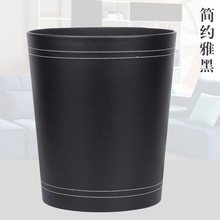 华美仕 黑牛皮纹皮质废纸篓 皮革垃圾桶 时尚创意家用办公室