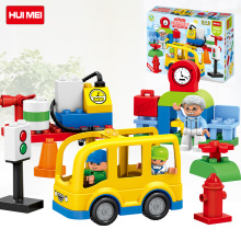 惠美积木塑料拼插儿童益智玩具1-2-3-6周岁大颗粒拼装都市巴士
