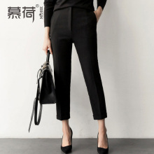 慕荷薄款西装裤修身女裤春夏九分裤小脚裤小腿小黑裤女士烟管裤