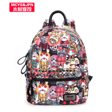 木村耀司粉色pu双肩包女韩版双肩背包印花可爱中学生书包女学院风