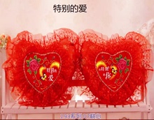 一对套枕套新款桃心形爱心型十字绣抱枕情侣结婚靠垫大红喜庆加厚