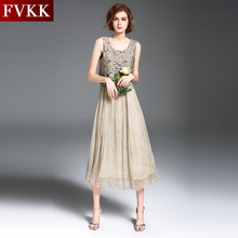 FVKK2017夏装新款女装大摆蕾丝连衣裙长款修身时尚拼接韩版A字裙