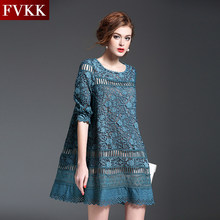 欧洲站2017夏装新款欧货女装宽松大码中长款时尚蕾丝连衣裙女