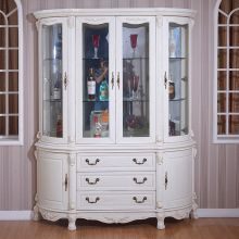 皇宇顾家 欧式白蜡木田园风格仿古白餐边柜酒柜简约现代实木酒柜