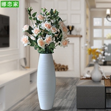 欧式白色陶瓷大花瓶落地客厅 现代时尚家居摆件 仿真花套装包邮