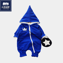 婴儿冬季连体衣服外出哈衣加厚加绒新生儿3-6-12个月男宝宝运动棉
