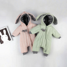 婴儿连体衣秋冬加厚0-3-6-12个月宝宝新生儿加绒哈衣冬装外出服潮