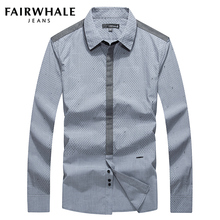 断码清仓 马克华菲长袖衬衫男装春季男士修身拼接波点纯棉衬衣