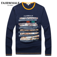 马克华菲长袖T恤男 2017春装新款韩版男士纯棉休闲圆领印花短上衣
