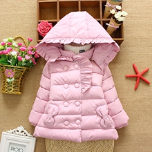 新款童装冬装女童胸前花边蝴蝶结加厚羽绒棉棉衣女宝宝棉服潮