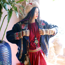 麦叙原创女装春季新款民族风牛仔外套女流苏花边短款拼色夹克