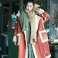 [麦叙]麦子原创自游客羔羊毛民族梭织保暖长外套女大衣秋冬中长款