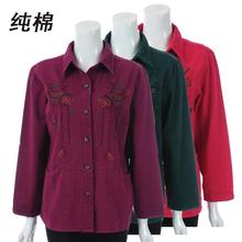 中老年女装纯棉长袖衬衫绣花春秋装老年妈妈装奶奶衣宽松高端包邮