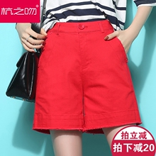 杭之吻2017夏季短裤女弹力松紧腰毛边休闲五分裤热裤翻边短裤女夏