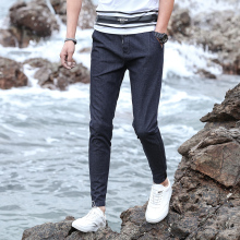 2017夏季男士修身小脚休闲裤时尚个性松紧腰男裤韩版青少年九分裤