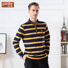 t恤男长袖中年男士纯棉卫衣修身条纹上衣体恤衫立领男装秋装衣服