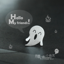 【Hello小幽灵】雨墨之森原创设计99纯银手工耳钉耳饰\个性搞怪
