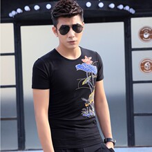 夏装新款男士短袖t恤 欧美烫钻印花半袖潮流修身韩版青年上衣体恤