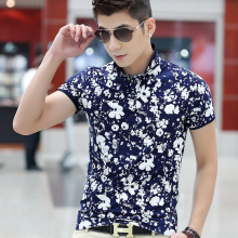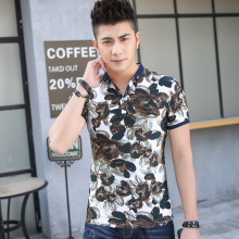 夏季新款韩版修身翻领时尚印花图案短袖T恤男士大码夏天半袖体恤