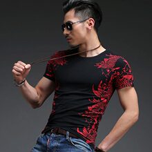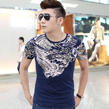 夏季新款圆领修身男士短袖t恤韩版龙印花图案纯棉个性上衣半袖衫