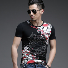 夏季薄款男士短袖t恤 圆领个性印花半袖上衣韩版修身青年流行体恤