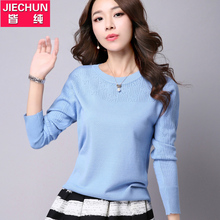 皆纯2016秋季打底衫T恤韩版长袖针织衫修身纯色套头镂空毛衣女