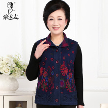 豪太太中老年女马甲春秋装妈妈装牛仔棉马夹背心大码奶奶装外套