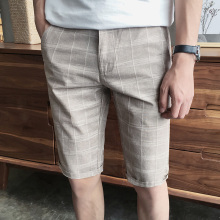 2017夏季新款男装休闲西装短裤韩版修身格子五分裤学生潮流中裤