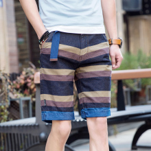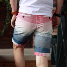 夏季新款男士休闲短裤条纹色织中裤男夏天修身大码撞色潮流五分裤