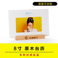 2017年8寸原木个性台历定制 创意木质年历制作企业宝宝照片定做