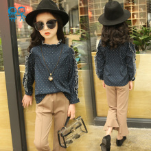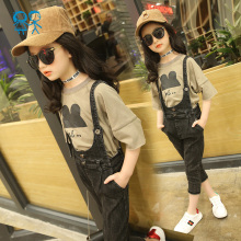儿童装女童韩版牛仔背带裤小女孩两件套装中大童衣服2017春装新款