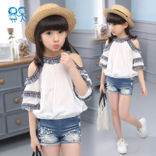 童装2017夏季新款女童夏装韩版漏肩短袖T恤儿童时尚半袖女孩衣服