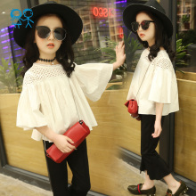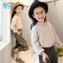 女童白色衬衫长袖2017春秋装新款中大儿童纯棉韩版拼接女孩上衣潮