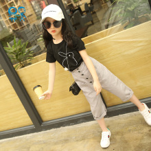 女童套装2017夏装新款中大童韩版短袖T恤上衣时尚百搭两件套潮款