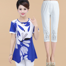 中老年女装夏装短袖t恤40妈妈装老年人夏天衣服50-60岁奶奶装套装