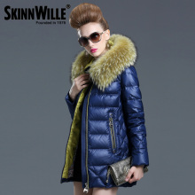 2016斯科维尔高端欧美大毛领羽绒服女中长款加厚时尚修身外套