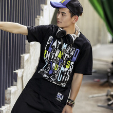 夏季圆领字母涂鸦印花BBOY街舞嘻哈T恤男士大码短袖加大加肥潮