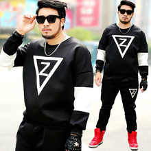 春季男士户外时尚卫衣运动衫胖人肥佬宽松大码运动套装加大加肥