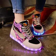 春秋季韩版平底发光鞋女usb充电led七彩闪光灯夜光荧光鞋高帮单鞋