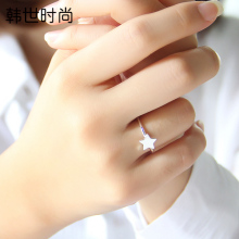 韩世时尚925银五角星星开口戒指日韩国个性简约食指环戒子潮人女