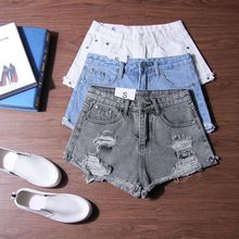 韩国高腰水洗破洞烟灰色卷边修身显瘦性感牛仔短裤女夏包臀热裤潮