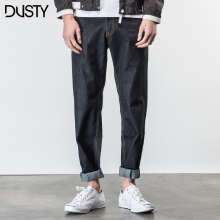 DUSTY春季男士潮流直筒牛仔布裤修身小脚裤字母袋花日系香港潮牌