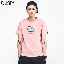 DUSTY潮牌男士夏季情侣涂鸦印花高街短袖t恤灰粉色修身半袖上衣