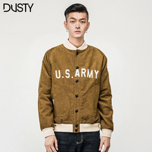DUSTY潮牌男士春装撞色字母绣花棒球工装夹克复古灯芯绒立领外套