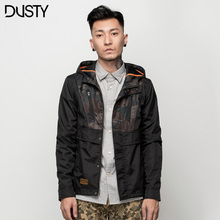 DUSTY春季男士连帽风衣半高领户外外套迷彩拼接色拉链衫防风 潮牌