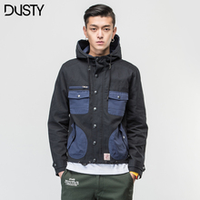 DUSTY春季男士连帽日系工装风衣经典四袋纯色修身外套香港潮牌