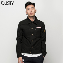DUSTY春季男士黑色单排扣教练夹克机车翻领潮流工装外套复古军款
