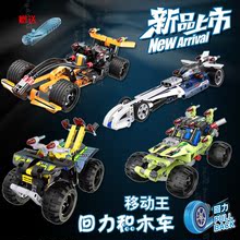 双鹰咔嗒拼装积木回力车儿童玩具拼装模型冠军赛车男孩生日礼物