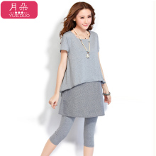2017孕妇夏季新款连衣裙薄款舒适显瘦短袖雪纺裙子潮妈两件套上衣